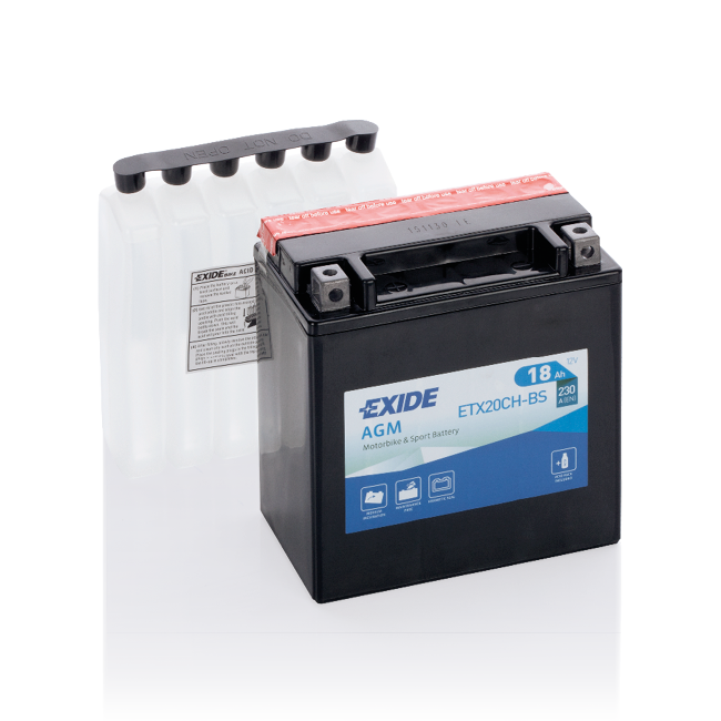Η μπαταρία Exide ETX20CH-BS πληροί όλες τις προδιαγραφές του κατασκευαστή της μοτοσυκλέτας σας. Έρχεται προφορτισμένη από το εργοστάσιο κατασκευής και είναι έτοιμη να τοποθετηθεί στο όχημά σας.